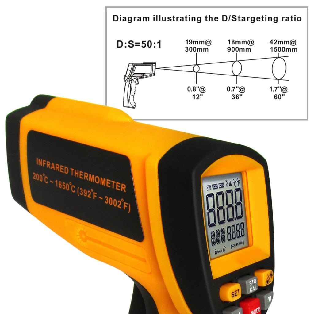 - IR-G1650 Digital 50:1 Pro IR Thermometer 1650°C 3002°F Adjustable IR-G1650 Digital 50:1 Pro IR Thermometer 1650°C 3002°F Adjustable
