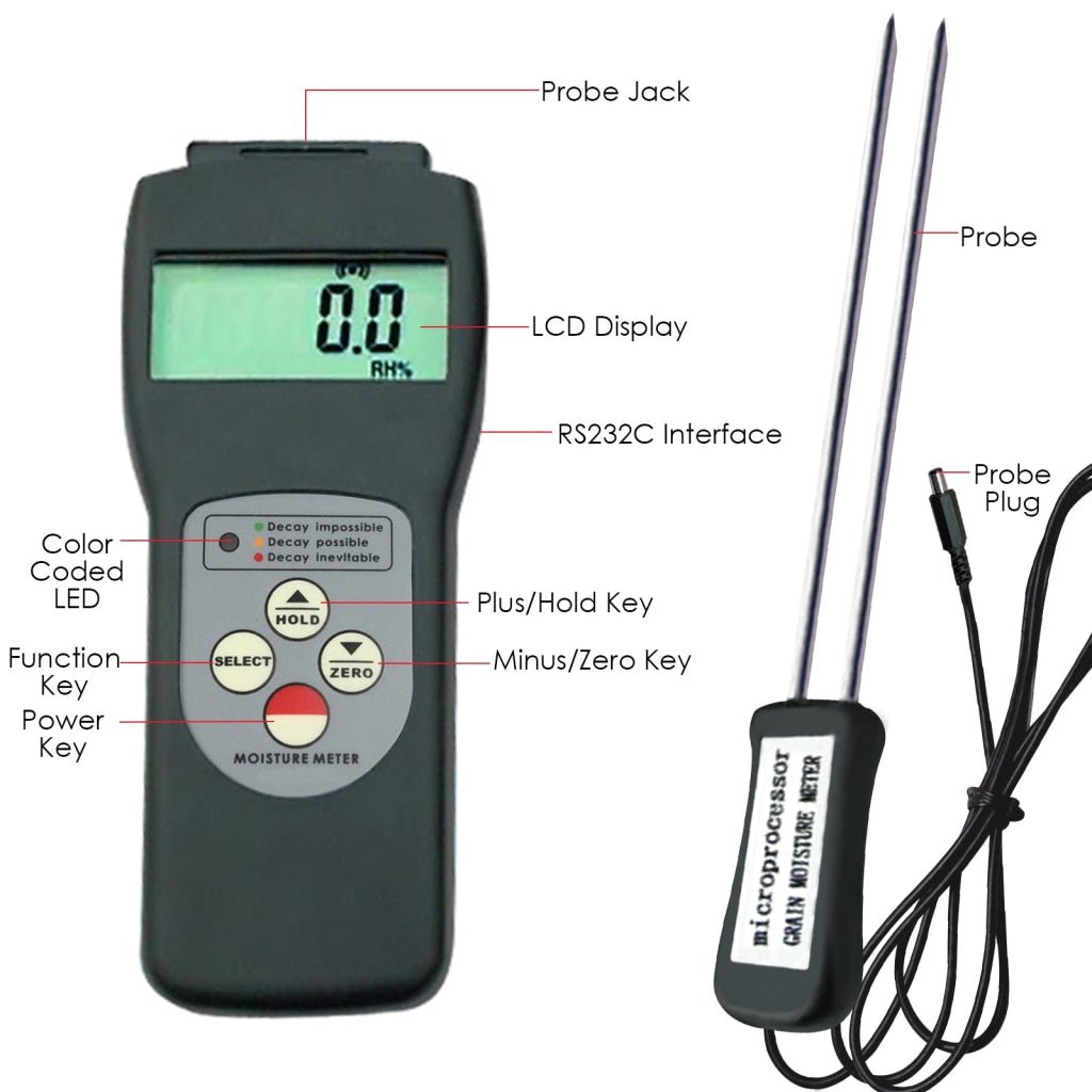 - Provides a FREE Extra-long 2-pin probe that reaches deep into your grain