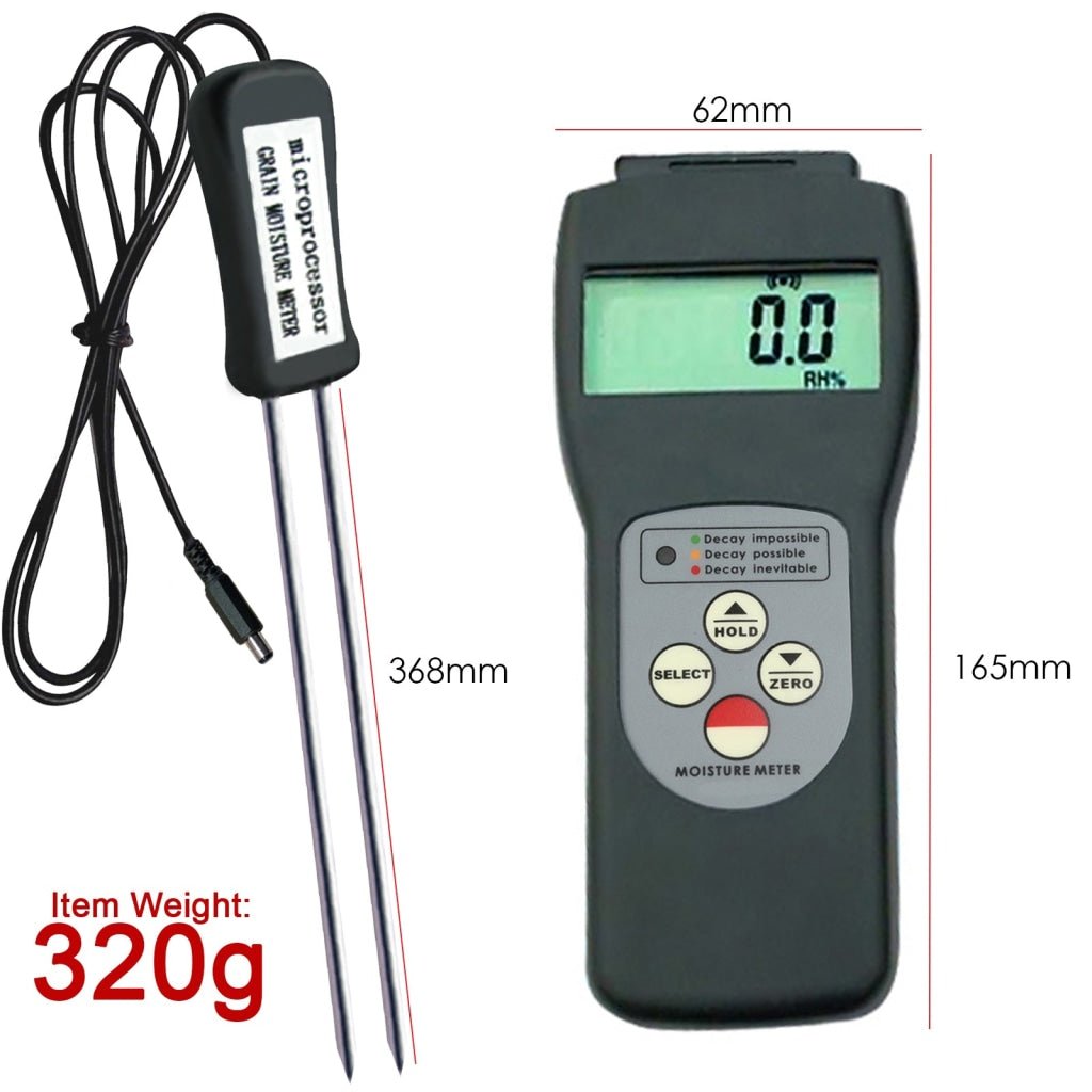 Introducing our new line of Multi-Grain Moisture Meter that determines the moisture content of whole, ground, milled and even flour and soft wheat. It has advanced features to bring a TOP QUALITY MULTI-FUNCTION METER that detects moisture not just in 1 or 2 but in 36 different varieties of grains. Data gathered will then be used by the coded LED lights to give you the most current condition of the grain being tested. This vital information can determine whether the produced grains are safe to store or process, or whether they are at risk of decay. Plus it comes with a FREE detachable EXTRA LONG 2-PIN PROBE that uses an exclusive micro-computer LSI circuit and crystal time base ensuring highly accurate readings, fast measuring and quick response time. A powerful and versatile instrument for measuring and diagnosing dampness in grains. Equipped with fast and accurate measurement of moisture in the process of allotment, acquisition, storage, machining of packed grains. Digital display gives exact reading with no guessing or errors while a color-coded light (LED) indicates the moisture condition of the material. This combined presentation of moisture measurement helps the user to map the extent of problems and monitor changes in condition precisely and reliably.