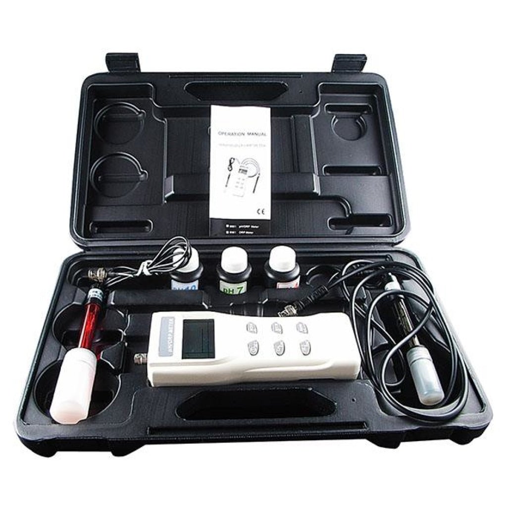 - Comes with pH electrode with ATC, ORP electrode, multi-purpose plastic hardened carrying case and 3 pH buffer solutions(pH4, pH7 & pH10)
