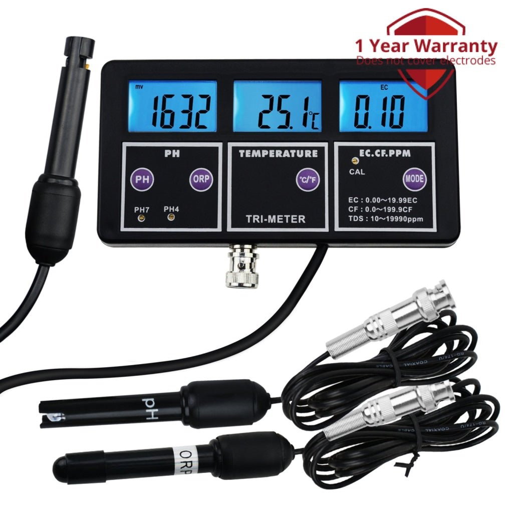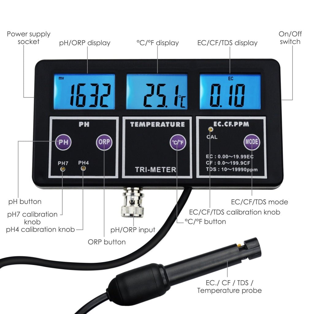 Professional six functional parameters, online continuous monitoring device, three large-screen display, high precision. Necessary tool for testing PH / Temperature / EC / CF / ORP / TDS of your solution level.