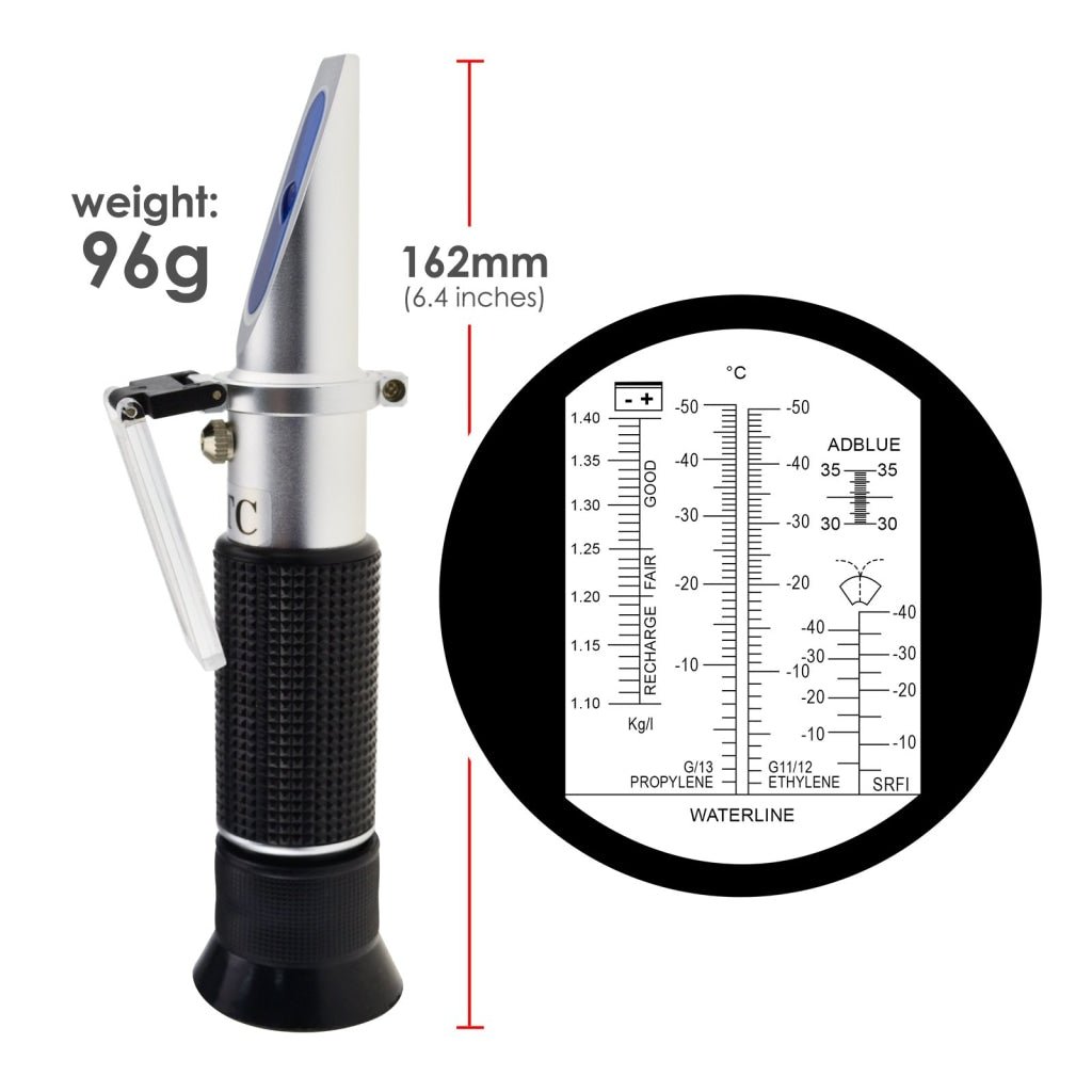 - REA-503abATC 6-in-1 Automotive Car Refractometer ATC for Adblue/ Antifreeze/ Battery Acid/ Windshield Fluid, Propylene Ethylene Glycol Cleaning Coolant Charge Specific Gravity Density Condition REA-503abATC 6-in-1 Automotive Car Refractometer ATC for Adblue/ Antifreeze/ Battery Acid/ Windshield Fluid, Propylene Ethylene Glycol Cleaning Coolant Charge Specific Gravity Density Condition