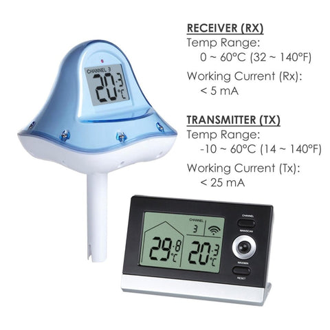 - RF-707 Wireless Floating Swimming Pool Thermometer 10~60 degree C (14 ~ 140 degree F) Range Digital RF-707 Wireless Floating Swimming Pool Thermometer 10~60 degree C (14 ~ 140 degree F) Range Digital