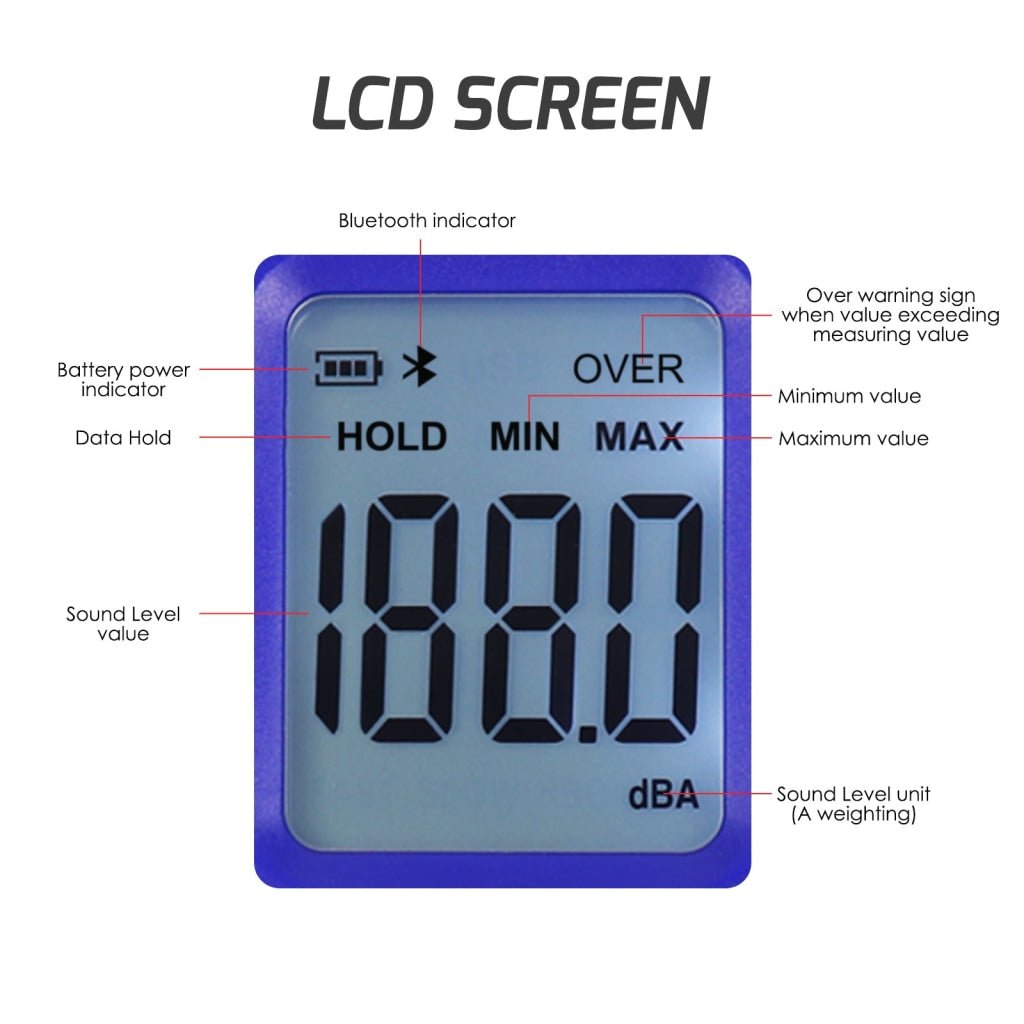 Introducing our Bluetooth Sound Level Meter - the perfect tool for accurately measuring and controlling sound levels in any environment. Equipped with Bluetooth technology, this meter can effortlessly connect to your smartphone via the dB Tester APP. Stay connected and conveniently monitor sound levels remotely. Provides accurate readings in a wide range from 30 to 130 dBA with an impressive ±1.5dB Accuracy and 0.1dB Resolution, you can trust the results.