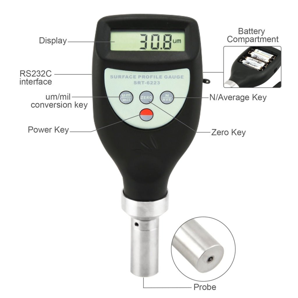 - SRT-6223 Digital Surface Profile Gauge Roughness Tester Meter w/ 0~800 μm Measuring Range SRT-6223 Digital Surface Profile Gauge Roughness Tester Meter w/ 0~800 μm Measuring Range
