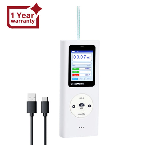 EMF-506 Digital Gauss Meter / Tesla Meter - High Precision Portable Magnetic Field Detector 0~25k Gs (0~2500 mT) Range for Magnet Testing, Motors & Industrial Applications HD Colored Display with Hall Sensor