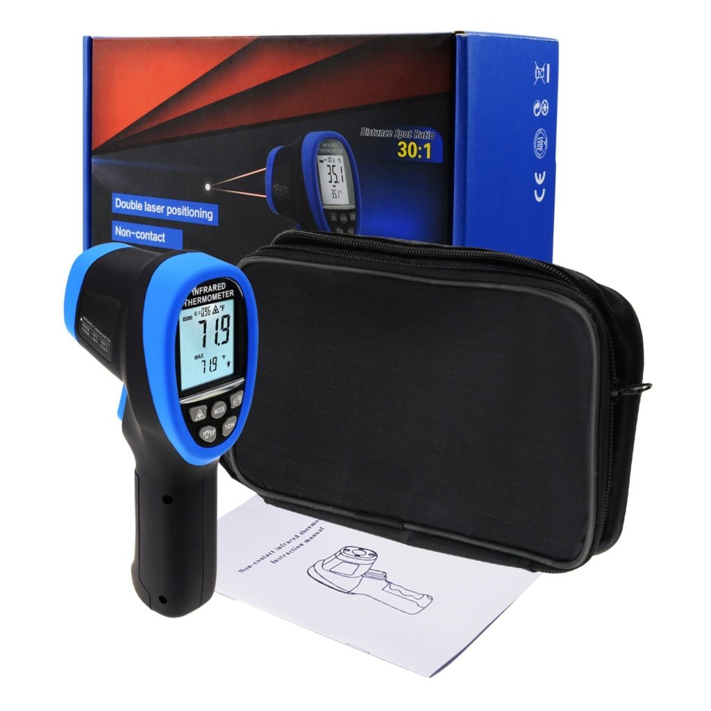 THE-219 Dual Laser IR Infrared Thermometer -50~1500°C (-58°F~ 2732°F), 30:1 DS, Non-contact Digital Temperature Meter Gun Pistol Type, Double Laser Pointer