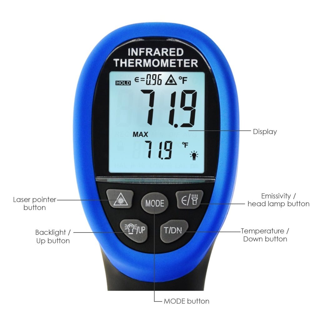 - THE-219 Dual Laser IR Infrared Thermometer -50~1500°C (-58°F~ 2732°F), 30:1 DS, Non-contact Digital Temperature Meter Gun Pistol Type, Double Laser Pointer THE-219 Dual Laser IR Infrared Thermometer -50~1500°C (-58°F~ 2732°F), 30:1 DS, Non-contact Digital Temperature Meter Gun Pistol Type, Double Laser Pointer