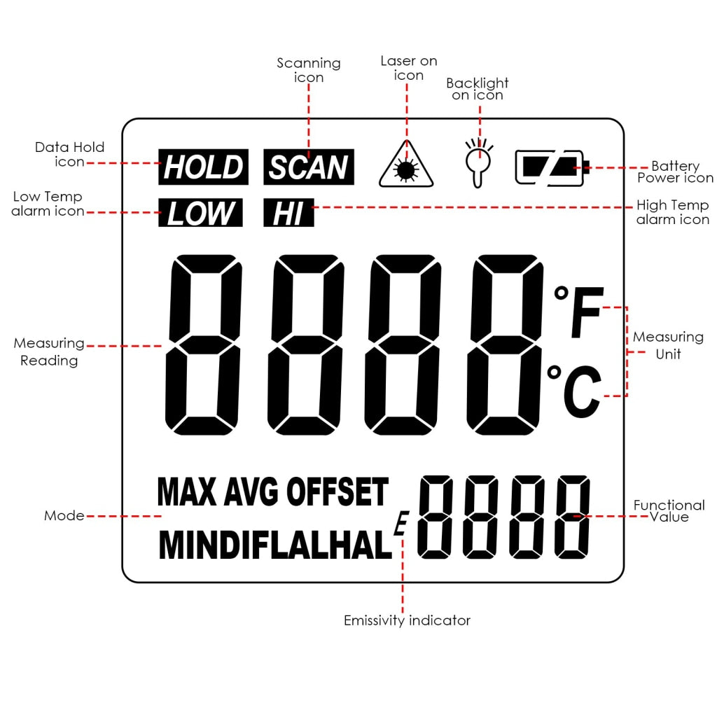 - Emissivity: 0.10~1.00 Adjustable (0.95 Preset)