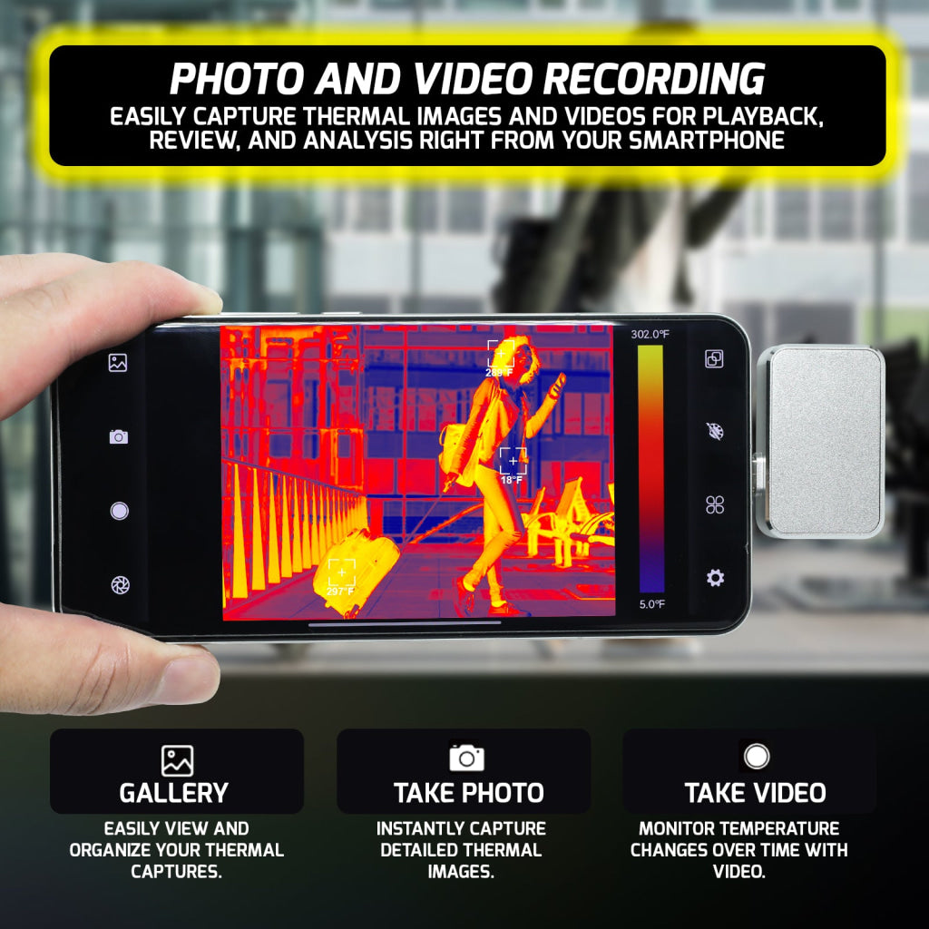 - THE-494 Mobile Infrared Thermal Imager - Smart Thermal Imaging & Temperature Measurement Android Type C Mobile Phone Photo Video Capture Camera Thermometer THE-494 Mobile Infrared Thermal Imager - Smart Thermal Imaging & Temperature Measurement Android Type C Mobile Phone Photo Video Capture Camera Thermometer