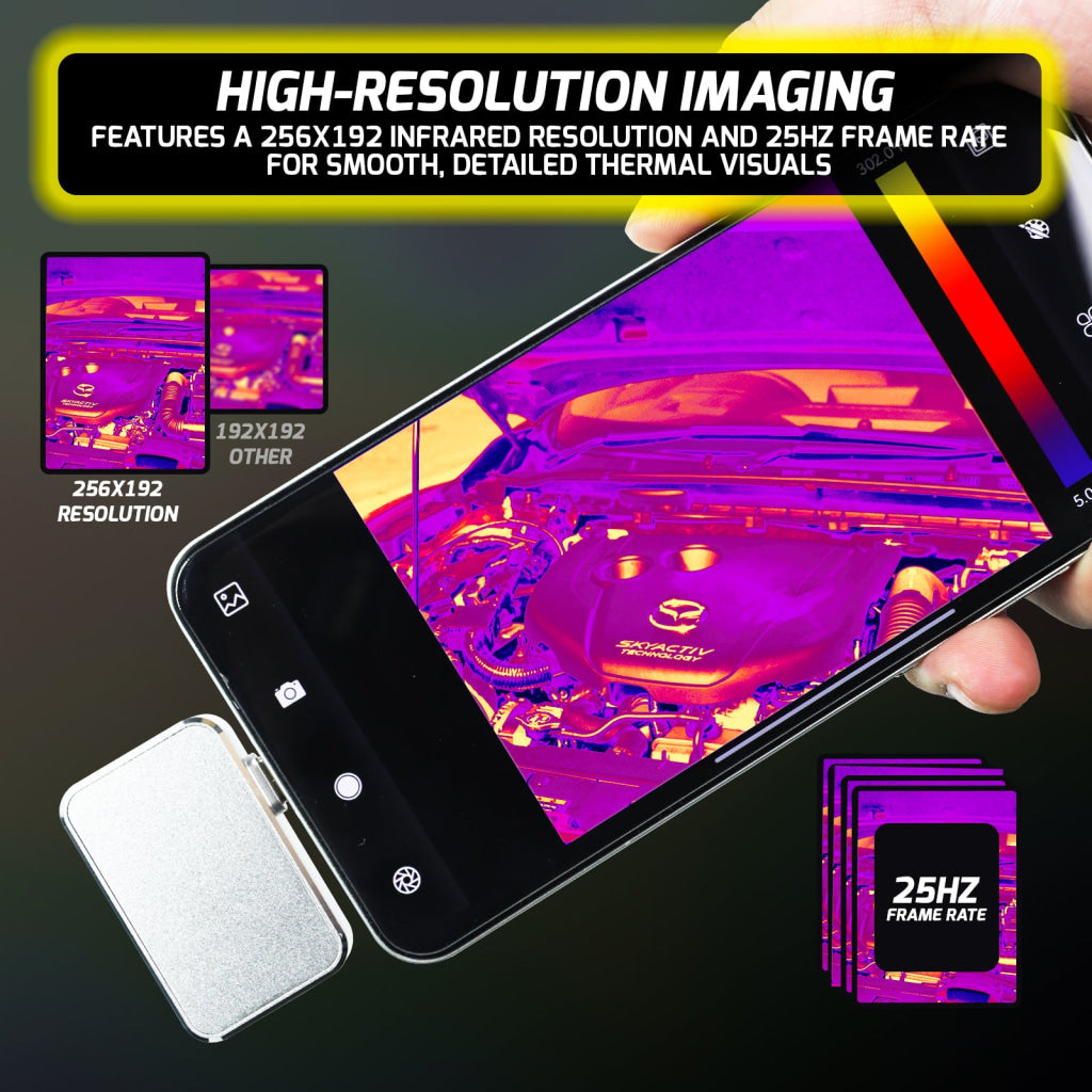 Transform your smartphone into a powerful thermal imager with via our state of the art Mobile Infrared Thermal Imager! Simply download the "Smart Thermal" App to enable infrared observation and temperature measurement.