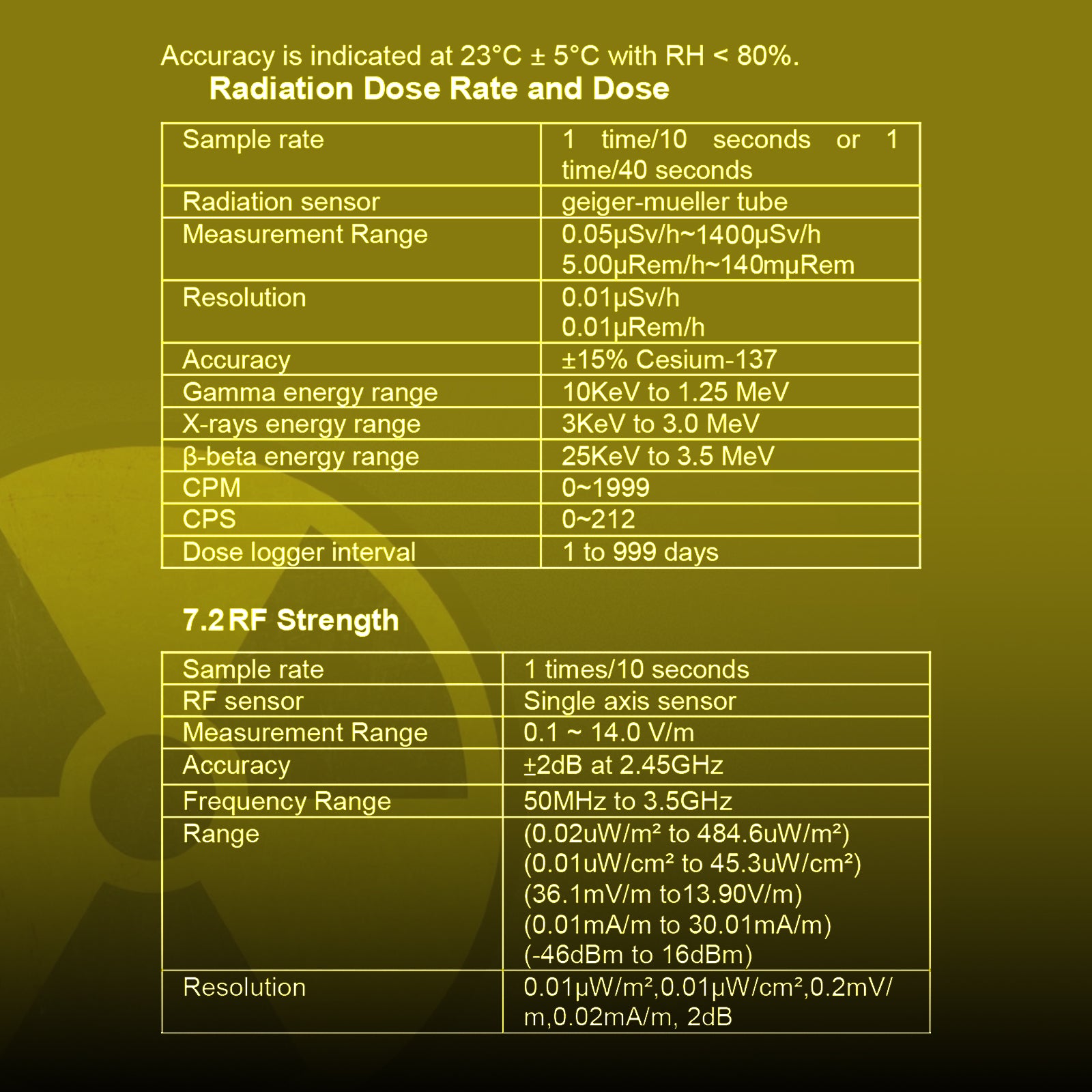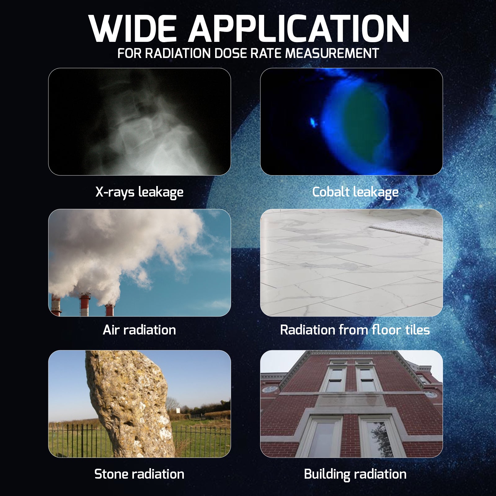 • Radiation dose rate measurement , can measure: