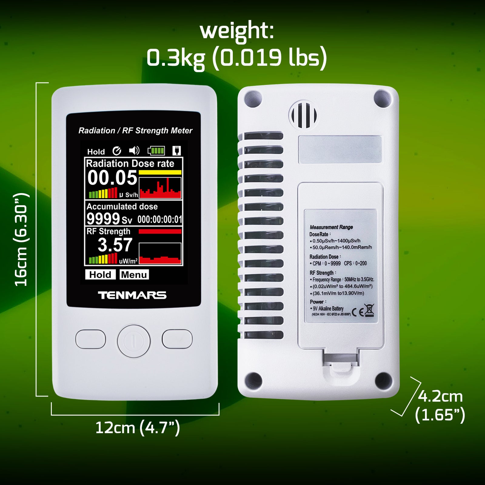 • TM-95 Tenmars Geiger Counter Radiation RF Strength Meter Nuclear Measurement Dosimeter Dose Tester Colored Display Made in Taiwan TM-95 Tenmars Geiger Counter Radiation RF Strength Meter Nuclear Measurement Dosimeter Dose Tester Colored Display Made in Taiwan