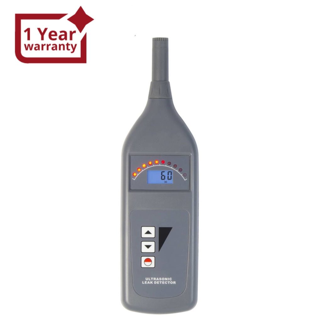 - Leakage Sensitivity Indicator: LED display panel & audible tone. (LED display is a relative measurement only. Audible tone is the frequency of the received ultrasonic sound divided by 32.)