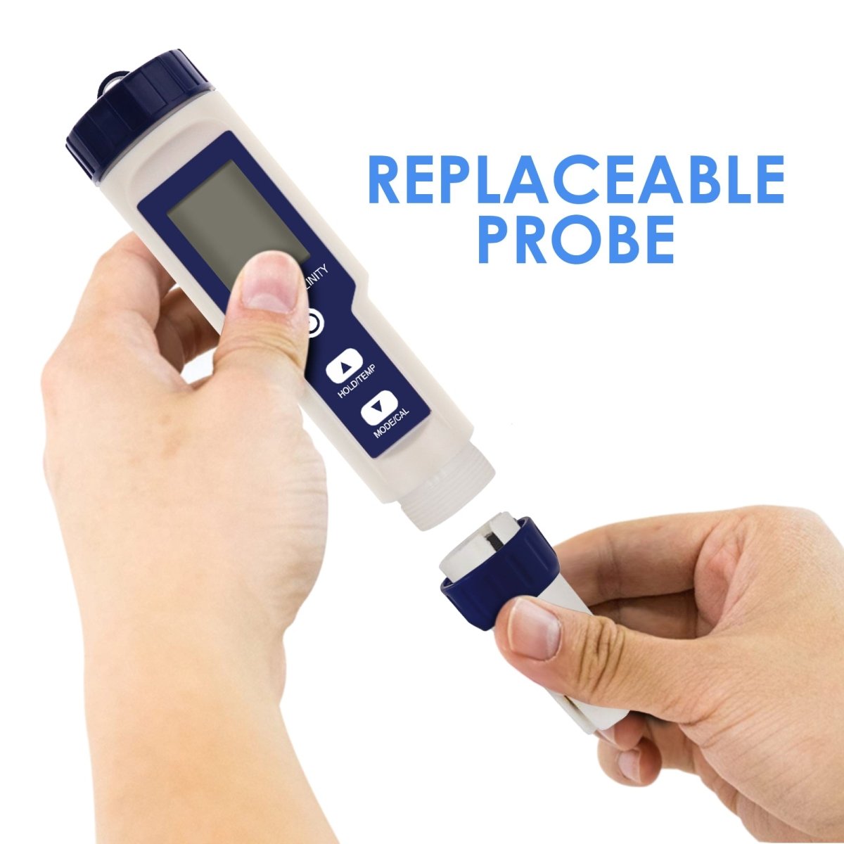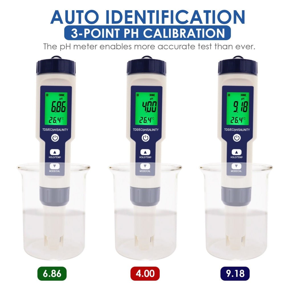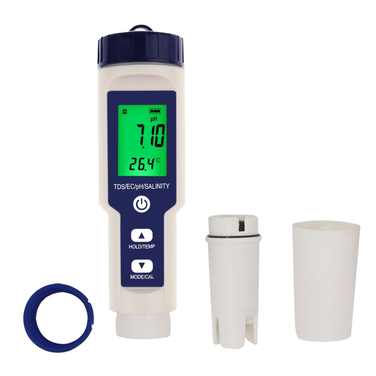 • WQM-303 Pentype Multi-Paramater 5-in-1 Water Quality Tester (pH / TDS / EC / Temp / Salinity) Waterproof Digital Meter Research Household Industrial Laboratory Analysis WQM-303 Pentype Multi-Paramater 5-in-1 Water Quality Tester (pH / TDS / EC / Temp / Salinity) Waterproof Digital Meter Research Household Industrial Laboratory Analysis