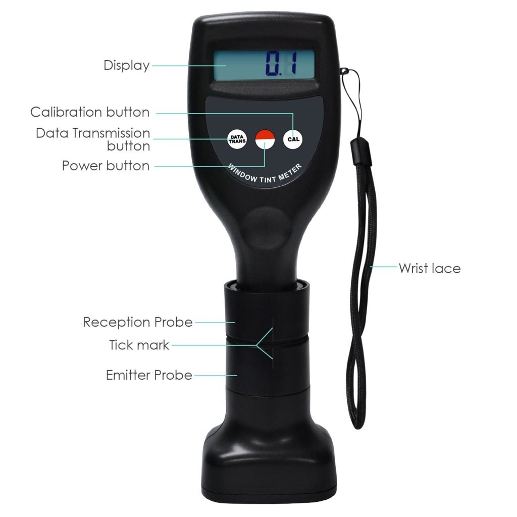- WTM-1200 Wireless Window Tint Meter 0-100% Handheld Visible/ UV/ Infrared Light Transmittance Transmission Measuring Gauge Tester Transparency, for Car Automobile Glass Plastics Water Drinks WTM-1200 Wireless Window Tint Meter 0-100% Handheld Visible/ UV/ Infrared Light Transmittance Transmission Measuring Gauge Tester Transparency, for Car Automobile Glass Plastics Water Drinks