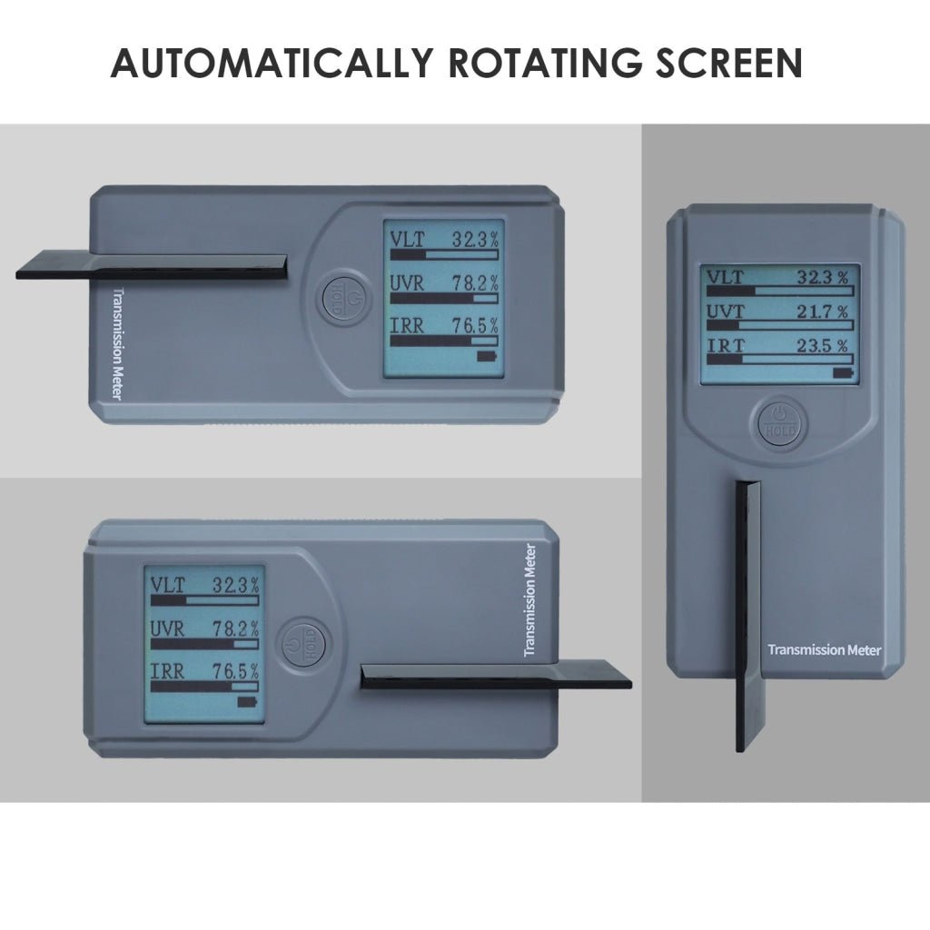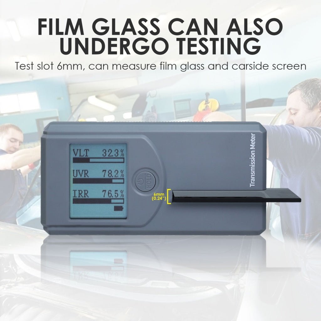 This portable Transmission Meter is use for measuring light transmission in various materials. It can simultaneously assess the visible light transmittance (VLT), infrared (IR) rejection/transmission value, and ultraviolet (UV) rejection/transmission value of solar films, adhesive films, and glass surfaces. Whether you're working with solar film installations or other light-sensitive materials, this tool provides a comprehensive analysis, ensuring you have precise measurements at your fingertips.